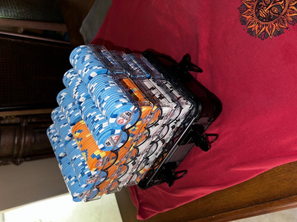 - Ten denomination options in a single collection, so your cash game runs from quarter blinds to five-thousand-dollar pots without swapping chip sets