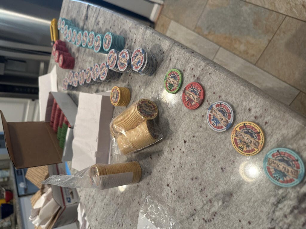 1 - American Flag bunting is in the chip center background