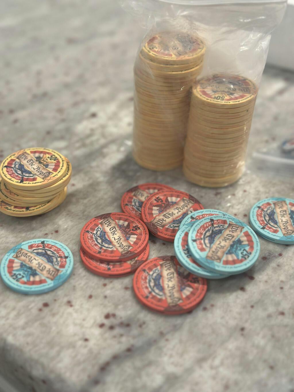 Not only can denominations and colors be changed, but the text on the chip can be customized as well.