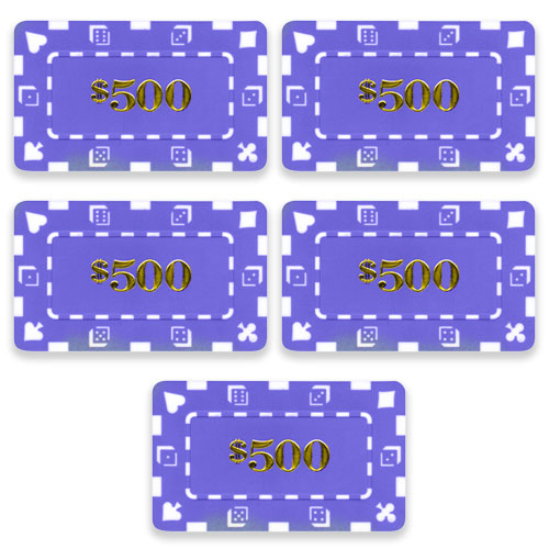Rechteckige lila Pokerplaketten im Wert von 500 $ - 5 Stück