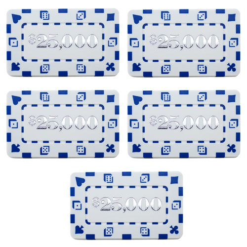 Rechteckige weiße Pokerplaketten im Wert von 25.000 $ – 5 Stück