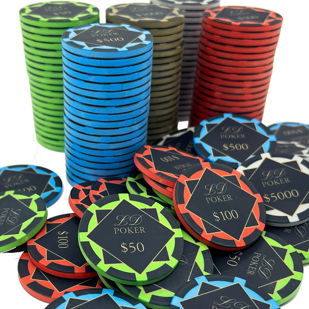 In stock ready to ship and print on demand ceramic, clay, and ABS poker chips