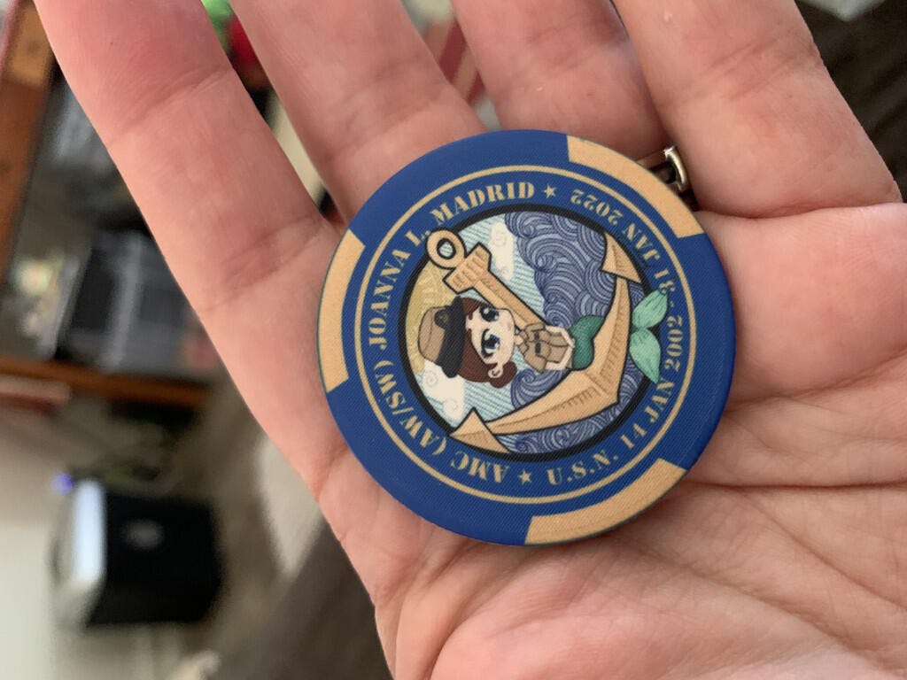 Featuring a ceramic poker chip with a direct print chip, these coins have a durability and robustness that makes them an ideal option for commemorating military excellence with an eye-catching and long-lasting award.